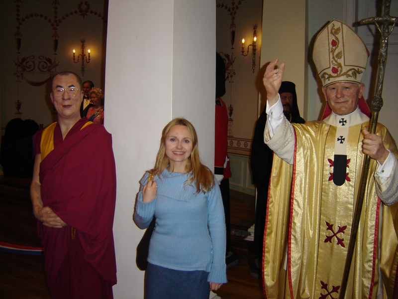 From the Tower of London we were back onto the Tube and off on Marylebone street trying to find Madame Tussauds. Madame Tussauds is a place you really want 2-for-1 deals; it costs a fortune to enter there. However not long into it I was excited, among the collection of standard celebrities there was a Sarah Michelle Gellar model. Edyta and I both got photos with her. It tore me up when some young girl was asking her dad who we were standing next to and even he didn't know. I wanted to scream at them - Buffy! We did had photos with some of the others too, I gave Samuel L. Jackson a bad mother f***er look and stood next to Patrick Stuart (in a suit, not his costume damn it). The best looking dummies were the new ones of some people from the show Very Little Britain (bit of a naff show with some good bits). From there it was into the action room with Harrison Ford, Arnold Schwarzenegger and others (including a very old Michael Jackson face). From there we found the world leaders room and the main display which was likenesses of the X-factor crew (so wanted to melt them...).