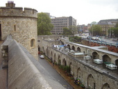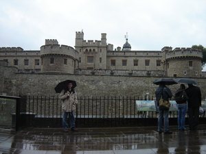 The next day saw us up nice and too bloody early to begin our first real bit of tourism since France (by real tourism I mean going to those places you have to say you've been too if you've been to the place). We caught a bus into Reading. While there I got to advise people that you didn't need to pay to enter the toilets (even though there are pay machines on the turnstile the things have never been used as long as I've been through that station - damn, I'm becoming an old hand on the train station). We went to London on a crowded train and then rode the Tube (love the Tube) out to Tower Hill. For those of you who don't know, this means we were visiting the Tower of London. However by the time we saw sky again it was overcast, low and dribbling lots of water from it. To help fight the cold I bought us a packet of roasted chestnuts. For a nut they were actually pretty spongy. It was worth trying but I don't think I'll put them on my favourite nuts list (however the sheer quantity of freely available chestnuts makes them an attractive food source).