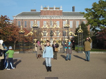 In London we had to work around the fact that the Circle line, the tourists best friend, was shut down for maintenance. We took a tube line to Kensington and then walked around (in the still freezing morning) through Kensington Gardens to Kensington Palace. On the way through the park we spotted what looked like a statue of a dog painted to look like a real dog. The statue was dead still and very life like so Edyta and I went over to investigate. As we got closer we noticed that it was covered in fur. It was now either a taxidermists work or a dog that just froze in place. When we were very close Edyta could see it breathing. It's eyes slowly acknowledged you but still it kept it's unflinching stance. It stayed this way as we walked around and tried to figure it out. Then ever so slowly it started to creep forward to a bench full of pigeons. Then it was apparent that the animal wasn't dead at all, just hunting. It picked up pace and some of the birds flew away. Then it's owner called for it and it took off like a bolt of lightning. All we ever saw of that dog again was the black and white streak as it raced from hill top to hill top.