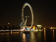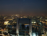 We left and lined up for the London Eye. Be warned future tourists, this place is run by British Airways so much you even get scanned and bag searched going in. You are not allowed any nail files, scissors, razors or any other thing I couldn't understand you taking into a capsule. After you leap into the moving capsule a cheery hostess welcomes you over the PA system. Then you are left to enjoy the sights. As our book told us it is best on a clear evening and we had that. The lights were spread out but I remember them as being much larger in area when we flew in (horizon to horizon for hours that night). Still it is a nice place to be and is best when you don't have the summer crush of people packed into the capsules.