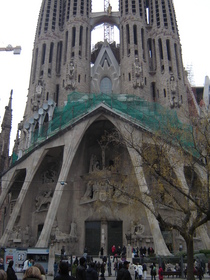 The first stop was the Sagrada Familia, a massive church still being built. The church has spires some 100m high and a central nave 170m tall. The outside has two artists styles on it, one Gaudi and another a guy commissioned to oversee the finishing of the building. The building is covered in scaffolding, not for repairs but for construction. You feel you should be wearing a hard-hat when walking around the ground floor. The roof (where complete) is huge and vanishes out of sight. The pillars are comprised of all sorts of geometric shapes, having circles, squares, rectangles, diamonds and ellipses as their shape till they sprout into tree like branches at the top. We climbed some stairs up to the top of the tower. These were very circular and narrow and being inspired by a snail meant there was no central pillar in the stair well. Instead there was this drop down to the ground floor that kept me glued to the side with the handrail (and I'm not normally concerned with heights). I felt safer when the stairs turned into claustrophobic passages ways. At the tops were rooms where so much graffiti was scratched into the stone the walls will have to be sandblasted clean when the rest of the church is complete.