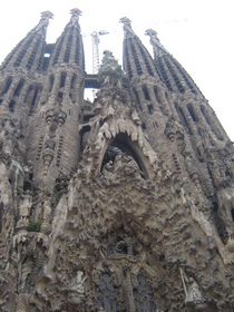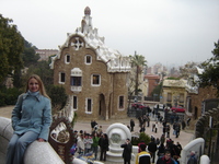 Our last day in Barcelona began with the same answering machine message from Air France. Breakfast was accompanied by American songs this morning. This day is to be spent chasing after all the works of Gaudi, a famous architect/artist of late 19th, early 20th century fame. He was convinced that things needed to look like nature, but still be built from concrete and iron.