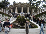 Back on the ground our legs were shaking from the walk. We went into some of the parks either side to get a long distance vantage. We had to wait as crowds of Asians pushed into the spot we wanted to stand. When they went off to photograph men playing boules we got our photos. We then rode the Metro over to the park that Gaudi developed on top of a mountain. The walk up to the park was so steep that Barcelona has installed escalators for the tourists to use. In the park we wandered around many bizarre structures built by Gaudi. His style works much better with nature around it, unlike his buildings that seem to stick out because they are so unusual. After having our fun clambering around the park we walked back through some more 'derelict' suburbs to the Metro stop. It amazes me what some people will live in, and then I have to remember that conditions here are so much better than many other places in the world that people want to live in them. I think Europe has taught me that I enjoy space around my single story, free standing home (actually I already knew that - Europe has just confirmed it for me).