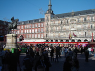 Food was at Plaza de la Villa, on the way to our destination we then made it into Plaza Mayor. There was a market in here selling goods in preparation for New Years. It was like a mini royal show, places were selling wigs, joke stuff, even one type of show bag. There were also as many stalls selling nativity scene goods. The Spanish are mad for a nativity scene at Christmas time. Nearly every store window had one. There have been bigger ones set up in various plazas in Barcelona and also Madrid. I stopped at a photo-mart to burn the images from the camera which was near full by now. No English was spoken but enough pointing got the job done. During the burn process an error dialog popped up, so I'm praying that the images burnt correctly. It was probably only to do with the memory card being removed without telling Windows about it, so it should be safe. Later Edyta and I stopped in some toy stores, then in a few military model stores (a strange Spanish obsession, yet no Games Workshops in sight).
