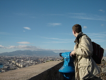We landed at Malaga and decided to look around the town a little before travelling on (especially as we had no luggage to worry about, just the same clothes from the beginning). We managed to find our way to the train station despite the signs pointing all over the place and then stopping a good 5 minutes walk from the place. While crossing out of the airport a lady who stopped for us to cross the road was rear-ended by another lady. Seems our luck was rubbing off on people near us too. The train was easy to ride (signs were in English) though we were a bit concerned by seeing everyone with suitcases sitting on the line not heading into Malaga central. Our train did go in the right direction and we alighted in a very pretty city, much like a Gold Coast meets Spanish charm. As we weren't to spending a long time in town we jumped on the Malaga city sight-seeing tour bus (and by now we should keep a receipt from any one of them, because you get 10% all future ones, which would have saved us a bit by now). Malaga has a mountain in the middle dominated by a fort, so we got off and wandered around there. There was a nice display of miniatures in the museum in the castle, but I could've done a similar paint job on them. The castle wasn't much, just left over walls. The views from the top were blocked by gum trees, of all things.