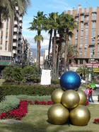 The bus took us back down a nail biting road to Malaga city. We got off at a square where there was a market. There were a few local foods but no English speakers or prices. Edyta wasn't sure about trying any more foreign food and didn't like the idea of buying something without knowing the price. So we settled on a muffin (at 80 euro cents I can understand why she wants to know the price before buying). Most of the people were dressed in medieval clothing and some girls were playing with ropes and streamers in a very old school fashion. As it was near lunch we decided to see which businesses had skipped siesta. There was one cafeteria that was essentially an ash tray. As far as we can figure out come New Years there is a total ban on smoking in all eating areas and the Spanish seem to be preparing by sucking down as much nicotine as they can before they have to stick on a patch after a good meal to get their cancer stick rush. Another pizza store was opening but Edyta and I stood in the door for a minute wondering what was happening and bagging the service before we left. As we were leaving a waitress told us the place opens at 1pm. Let that be a lesson, be very careful what you say in Spain, they speak a lot more English than you know (and more that the French would admit too).