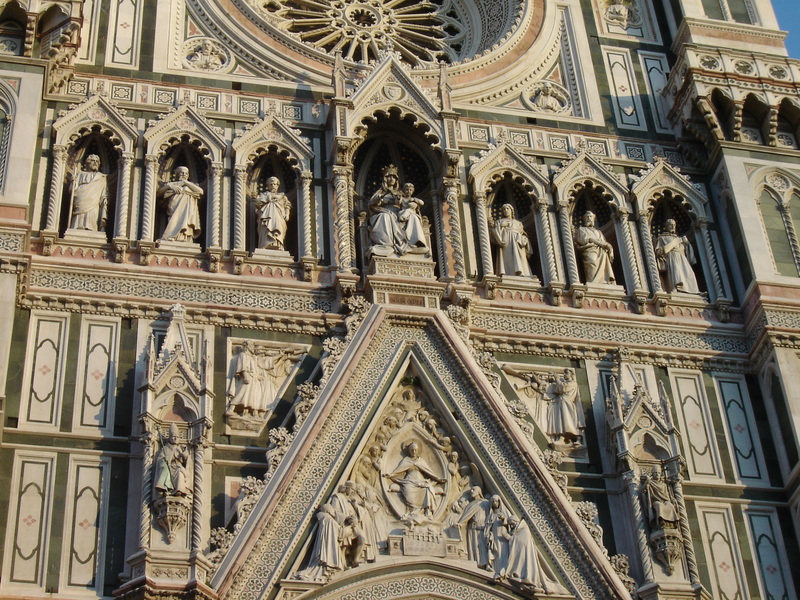 We finished Florence today. It is a city. There are many churches, quite a few that charge to go into them. There is a river with a big bridge. The bridge is covered in stores selling gold, and tourists struggling to get a clear path for a photograph. The river bank with a good view of the bridge is filled with hawkers selling the same goods (all at 50% off the unlisted price). There is an old citadel that is a low bastion with some buttresses and a cover charge to enter. There are narrow streets of buildings towering overhead, often covered in scaffolding, and full of hawkers selling goods in street markets. Many of the churches also are full of old Italians going to Mass. We even saw an active confessional for once. Tourists filled the main Florence city centre so that it was impossible to get a little bit of free space.