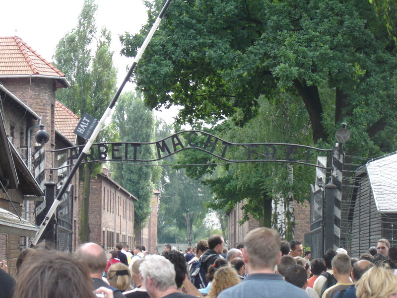 Auschwitz was a tourist mecca. The place was crowded with tour buses and cars. Our first sign of the place was a horde of yellow jacketed car park wardens moving cars around. We were joined with other people from our tour. First we saw a brief documentary using footage from the soviet propaganda films (circa 1946/47 ish). Then we were led into one of the most brutal places ever to exist on Earth. We started in the small camp that housed the men. I didn't think it looked all that big to house all the prisoners and I was right, there were two more camps. The first camp was a convenient one as the Polish army had already built it to house their troops. We saw piles of remains of possessions from the Jews as well as the rooms where Polish people were starved or tortured. There were 'standing cells', little cells only a metre by a metre that four people were made to stand in for 12 hours or more at a time. The room had no ventilation and most likely a person or two would die from the exhaustion. We did see the temporary gas chambers that were used until they became inefficient for the task of mass murder.